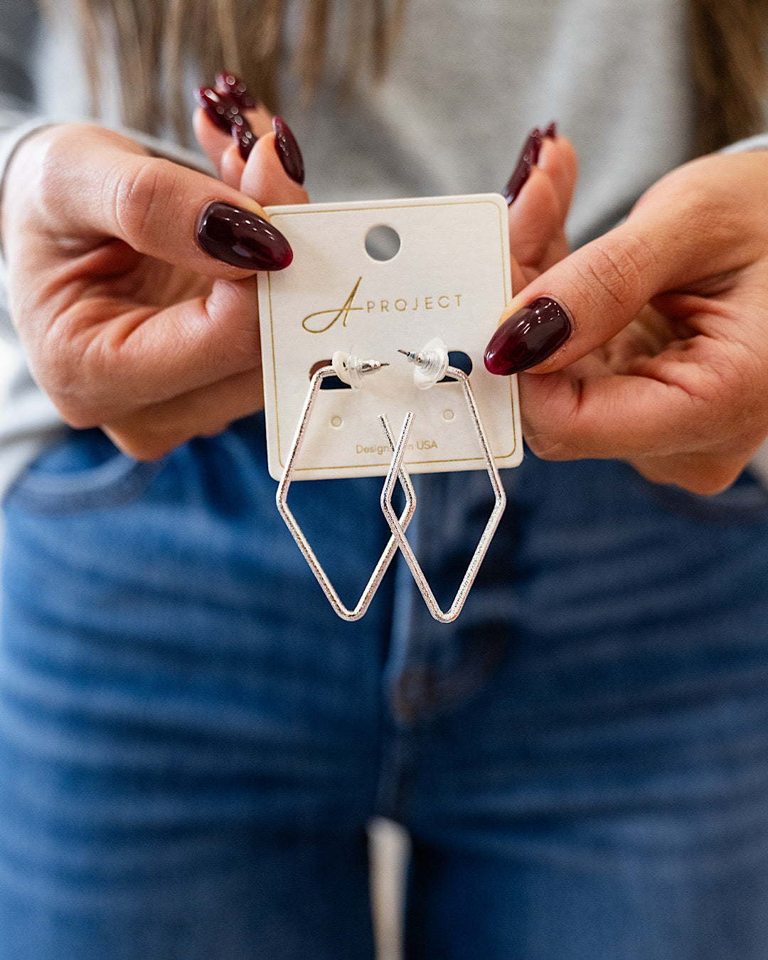 NEW! Textured Metal Diamond Shaped Earrings - Silver