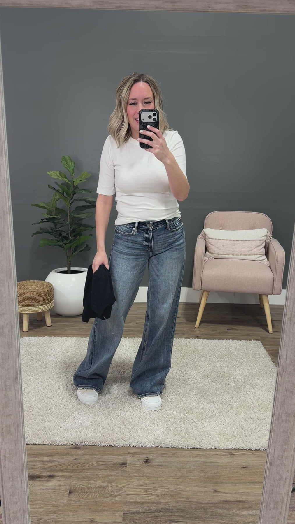 Alyssa is 5'5" and wears a size 25 in jeans, a small in bottoms and a small in tops.