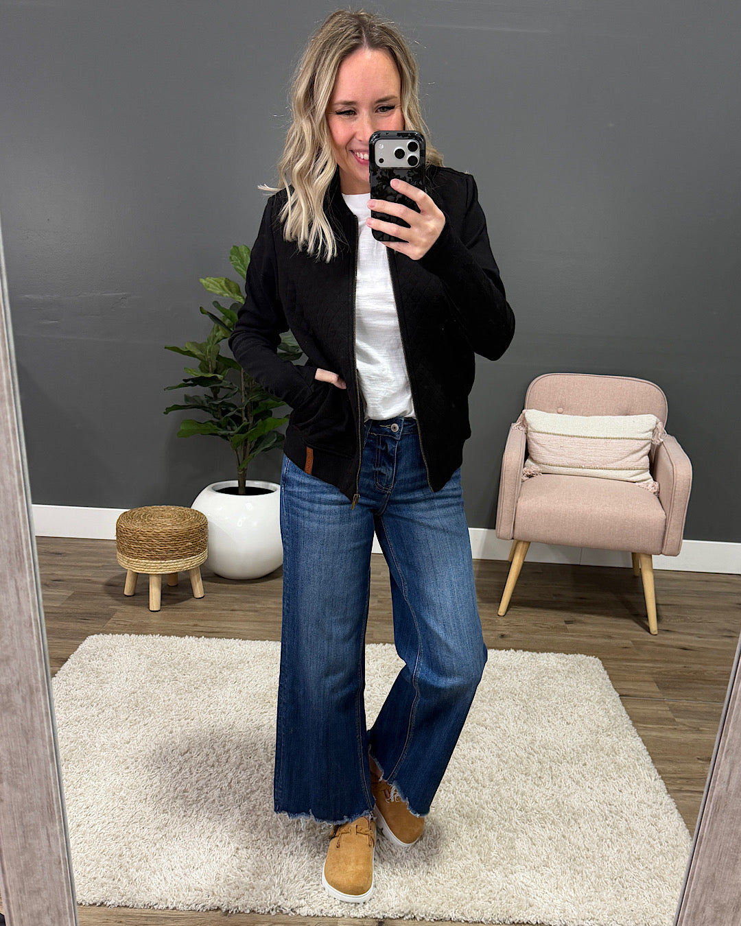 NEW! Ampersand Ave Quilted Bomber Jacket - Black