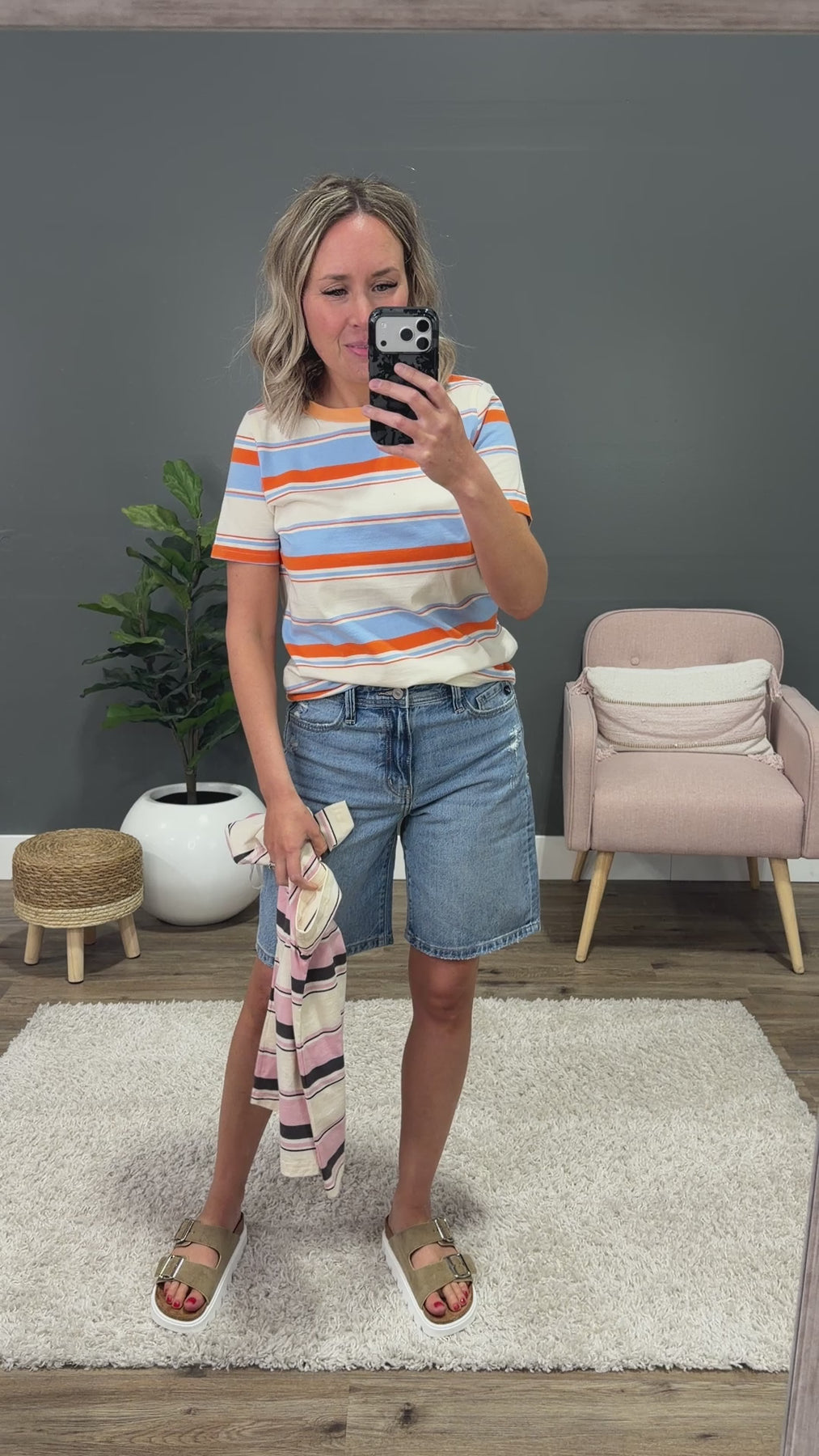 Light, fresh, and easy to wear, this striped top brings a soft pop of color to your everyday lineup. The 100% cotton fabric keeps it breathable and comfortable, while the contrast neckline adds a subtle, standout detail. An effortless piece you’ll keep reaching for with denim on repeat.