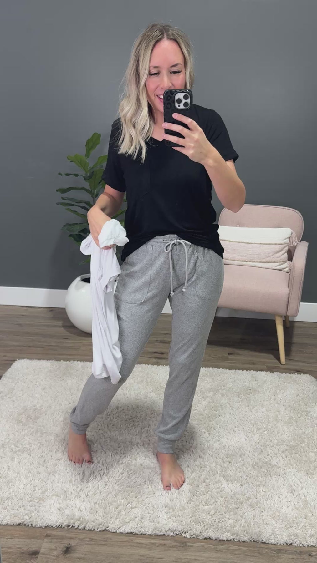 Alyssa is 5'5" and wears a size 25 in jeans, a small in bottoms and a small in tops.