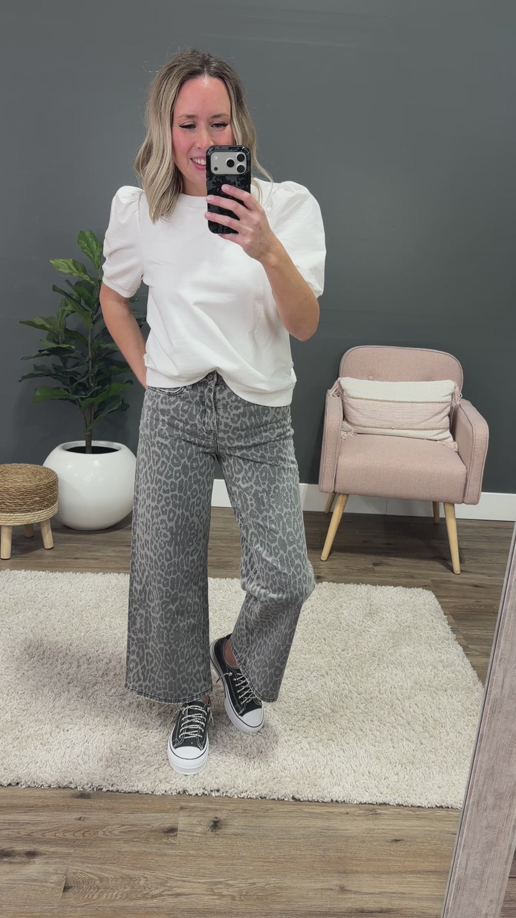 NEW! Vervet Hallie Wide Leg Jeans - Gray Leopard