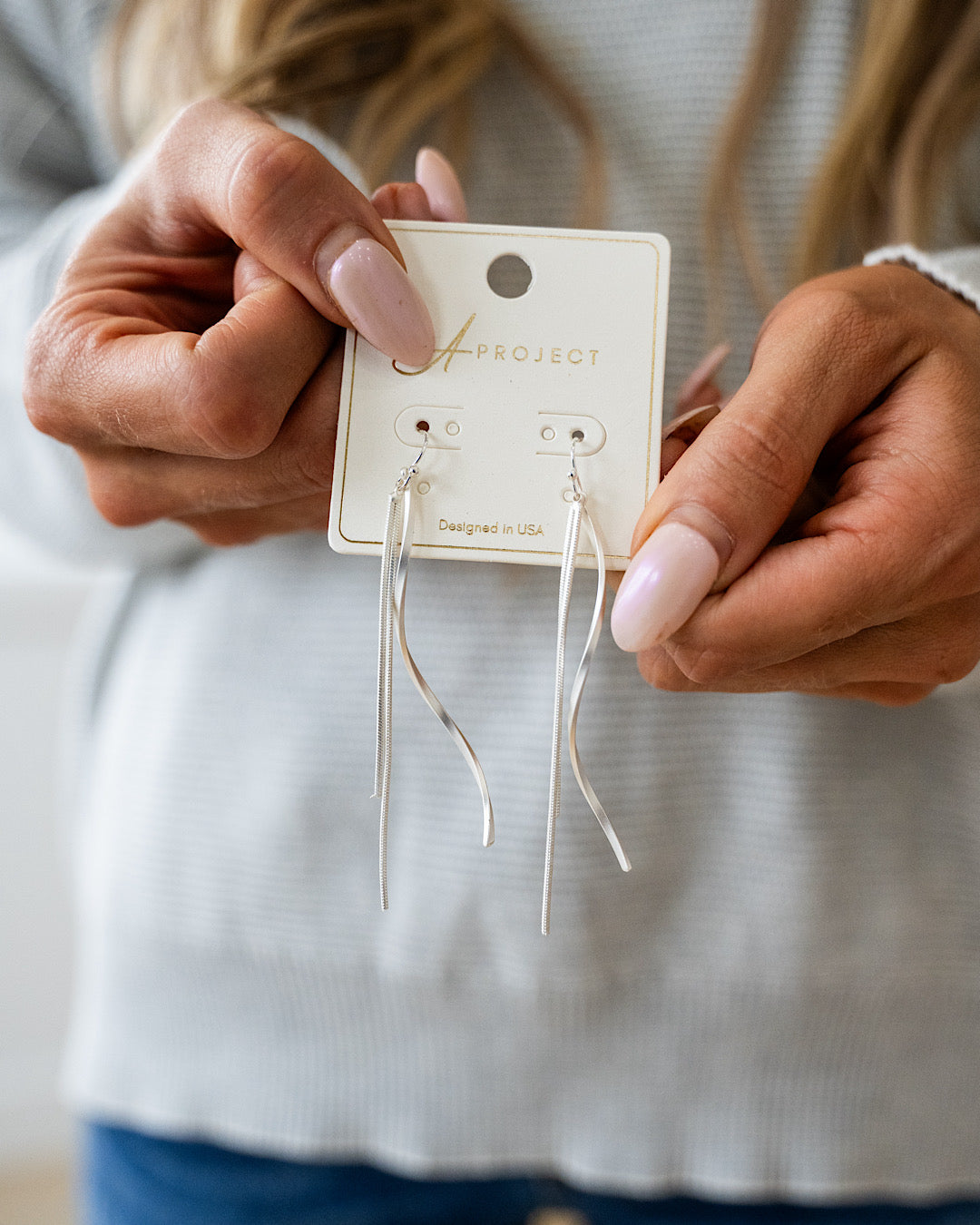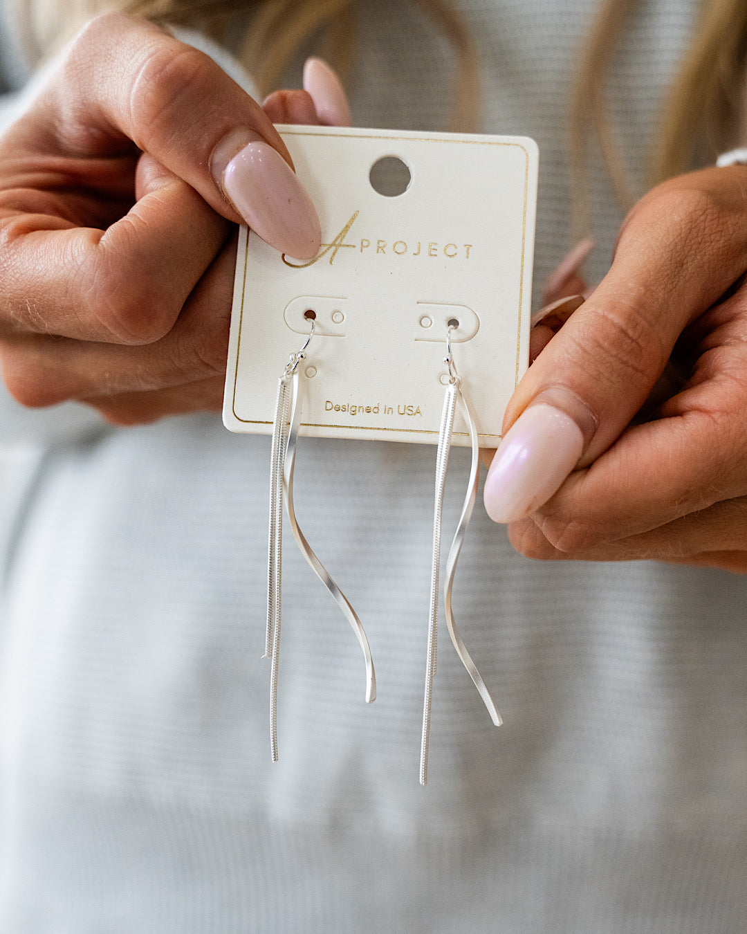 Wavy Bar and Chain Dangle Earrings - Color Options Available! Trendy Wholesale Silver